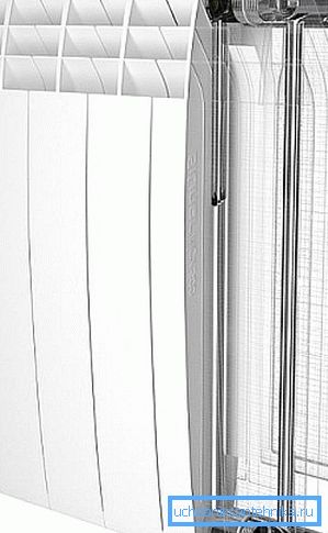 - Ljudje, ki se ne uporabljajo za varčevanje, pogosto namestijo bimetalne baterije. Jedro v teh konstrukcijah je izdelano iz nerjavečega jekla in lahko vzdrži pritisk ali vodni kladivo, lupina pa je izdelana iz aluminija. Zaradi te simbioze imajo bimetalne strukture edinstvene značilnosti kakovosti. Dejansko je njihova edina pomanjkljivost visoka cena.
